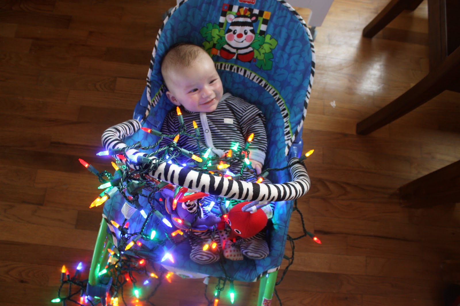 Trying to carry the tree out with a dog on leash and a son insisting on pulling the opposite direction.